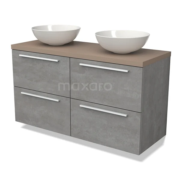 Modulo Plato Badmöbel mit Aufsatzwaschbecken | 120 cm Hellgrauer Beton Flach front Taupe blatt 4 Schubladen