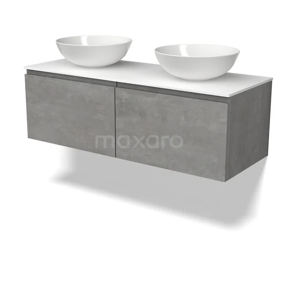Modulo Plato Badmöbel mit Aufsatzwaschbecken | 120 cm Hellgrauer Beton Grifflos front Solid Surface blatt 2 nebeneinanderliegende Schubladen
