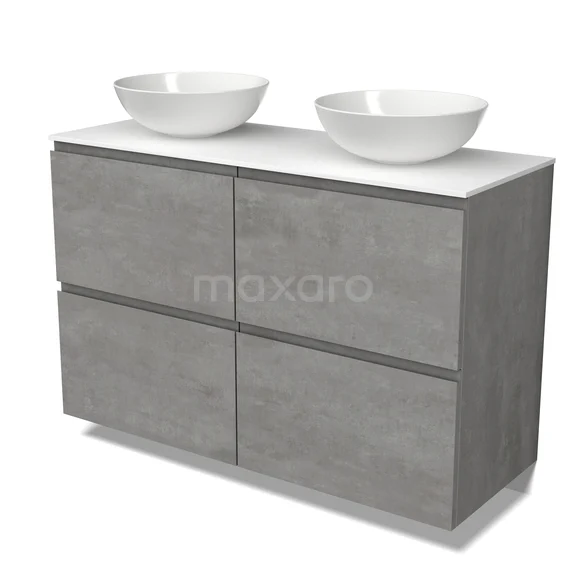 Modulo Plato Badmöbel mit Aufsatzwaschbecken | 120 cm Hellgrauer Beton Grifflos front Solid Surface blatt 4 hohe Schubladen