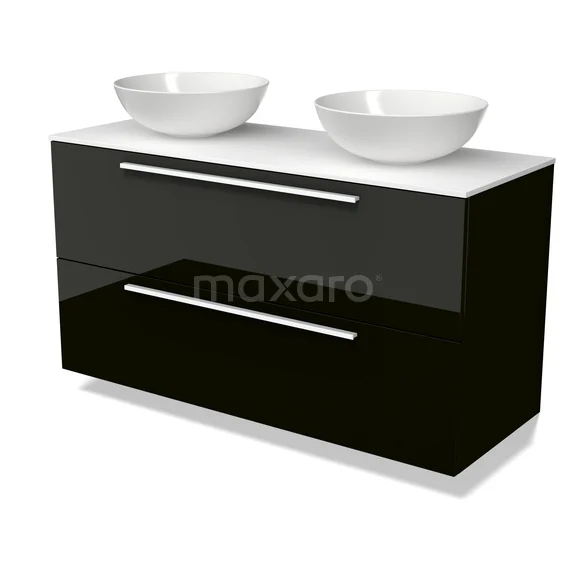 Modulo Plato Badmöbel mit Aufsatzwaschbecken | 120 cm Hochglanz Schwarz Flach front Solid Surface blatt 2 übereinanderliegende Schubladen