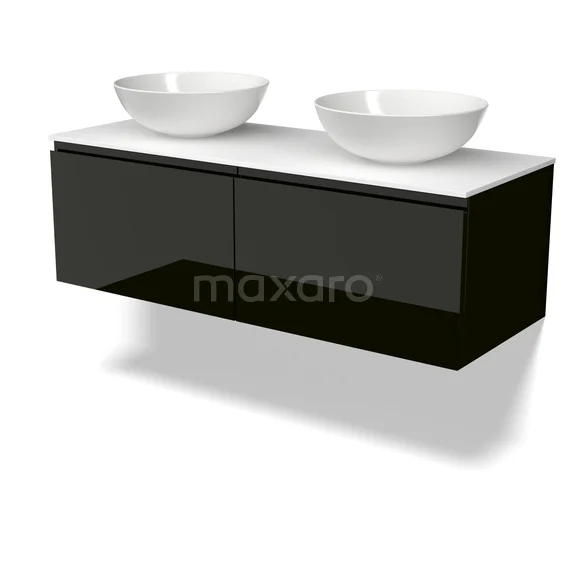 Modulo Plato Badmöbel mit Aufsatzwaschbecken | 120 cm Hochglanz Schwarz Grifflos front Solid Surface blatt 2 nebeneinanderliegende Schubladen