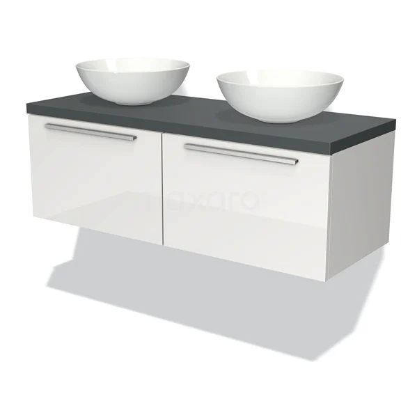 Modulo Plato Badmöbel mit Aufsatzwaschbecken | 120 cm Hochglanz Weiß Flach front Dunkelgrau blatt 2 nebeneinanderliegende Schubladen