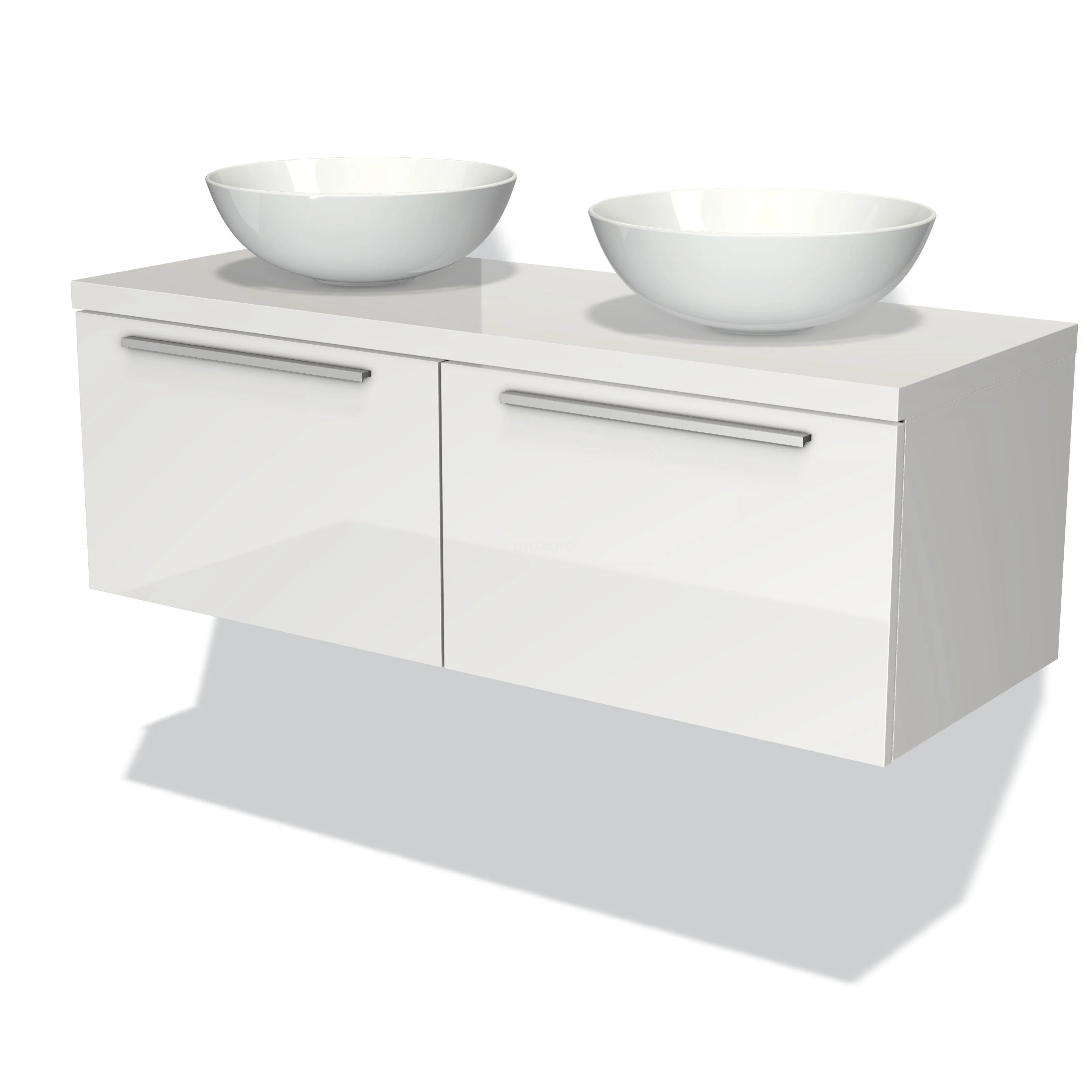 Modulo Plato Badmöbel mit Aufsatzwaschbecken | 120 cm Hochglanz Weiß Flach front Hochglanz Weiß blatt 2 nebeneinanderliegende Schubladen