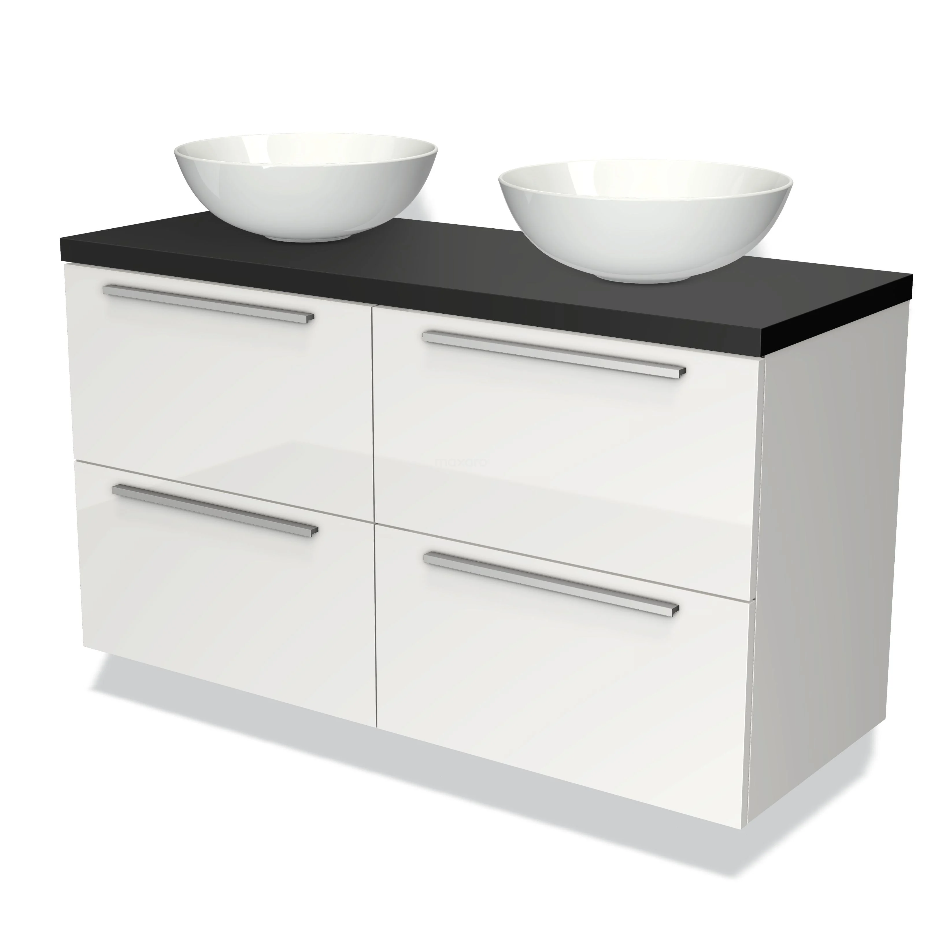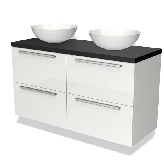 Modulo Plato Badmöbel mit Aufsatzwaschbecken | 120 cm Hochglanz Weiß Flach front Matt Schwarz blatt 4 Schubladen