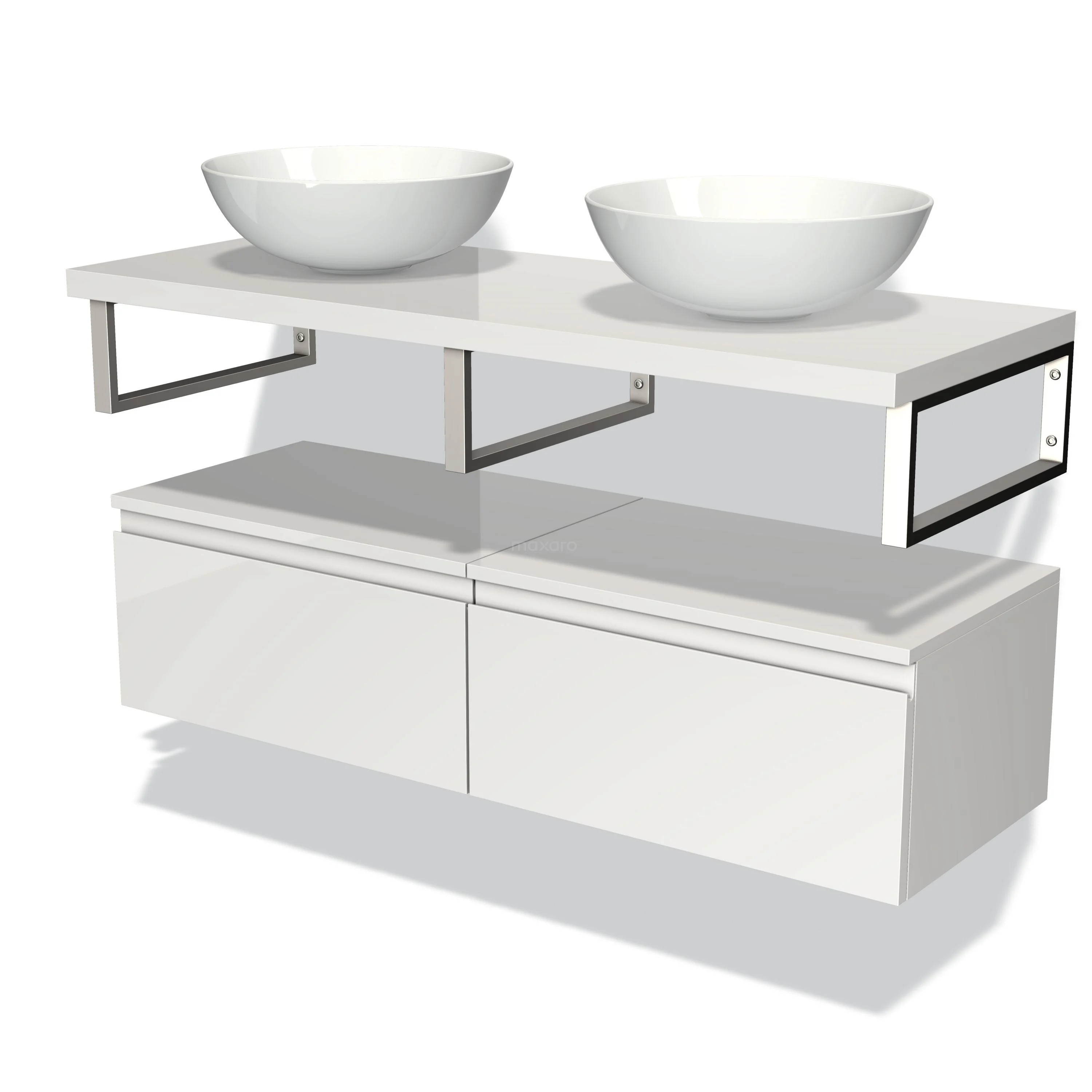 Modulo Plato Badmöbel mit Aufsatzwaschbecken | 120 cm Hochglanz Weiß Grifflos front Hochglanz Weiß blatt Tief hängend