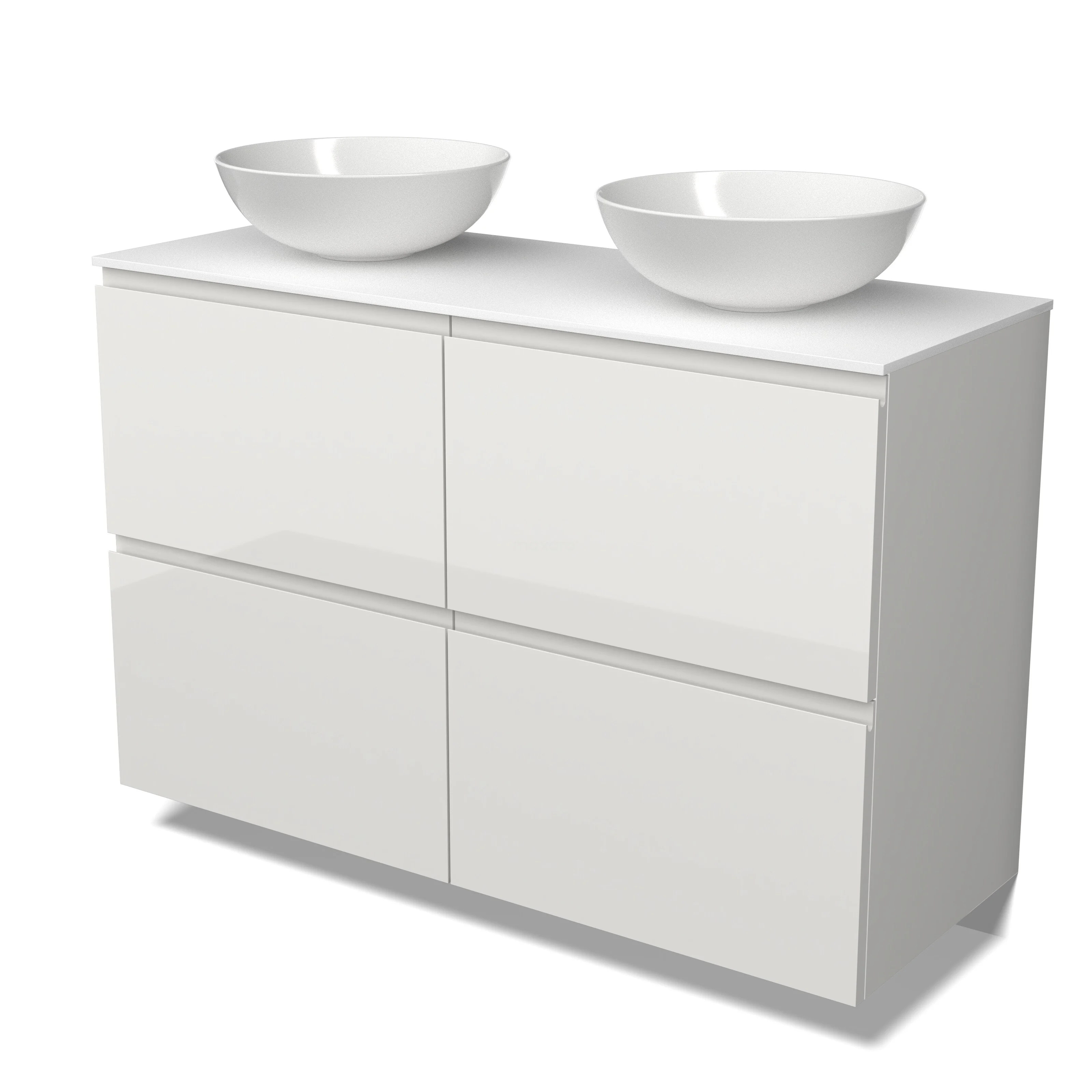 Modulo Plato Badmöbel mit Aufsatzwaschbecken | 120 cm Hochglanz Weiß Grifflos front Solid Surface blatt 4 hohe Schubladen