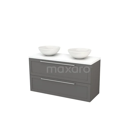 Modulo+ Plato Badmöbel mit Aufsatzwaschbecken | 120 cm Hochglanz Weiß Rahmen front Hochglanz Weiß blatt 2 übereinanderliegende Schubladen