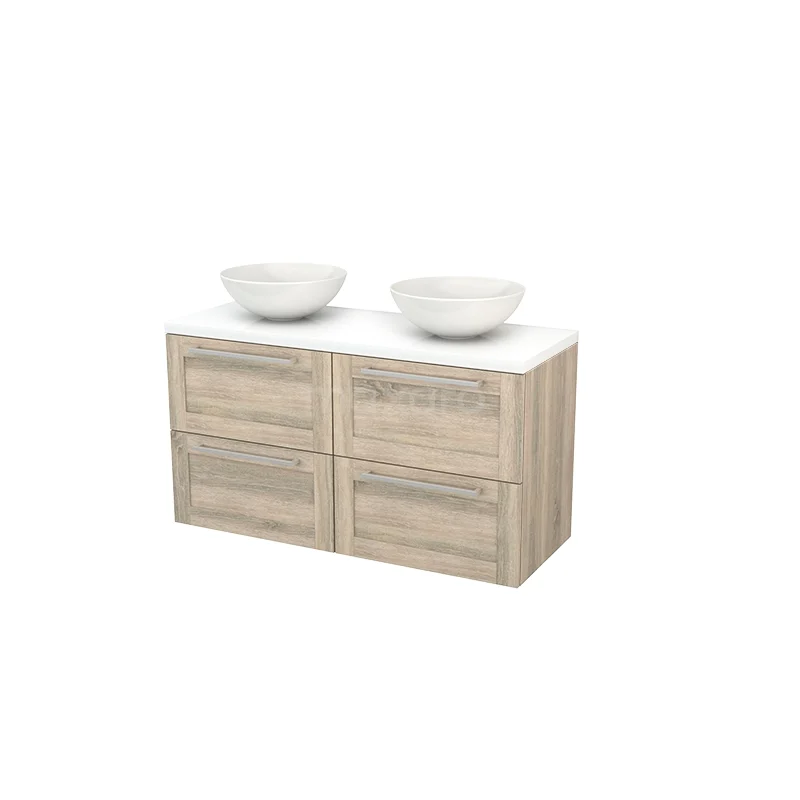 Modulo+ Plato Badmöbel mit Aufsatzwaschbecken | 120 cm Hochglanz Weiß Rahmen front Hochglanz Weiß blatt 4 Schubladen