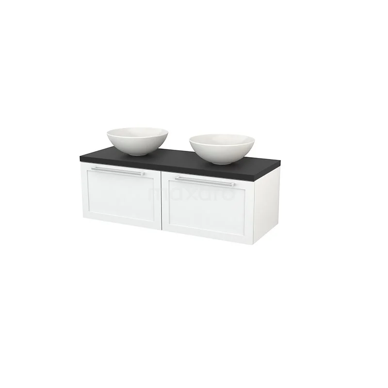 Modulo+ Plato Badmöbel mit Aufsatzwaschbecken | 120 cm Hochglanz Weiß Rahmen front Kohlenstoff blatt 2 nebeneinanderliegende Schubladen