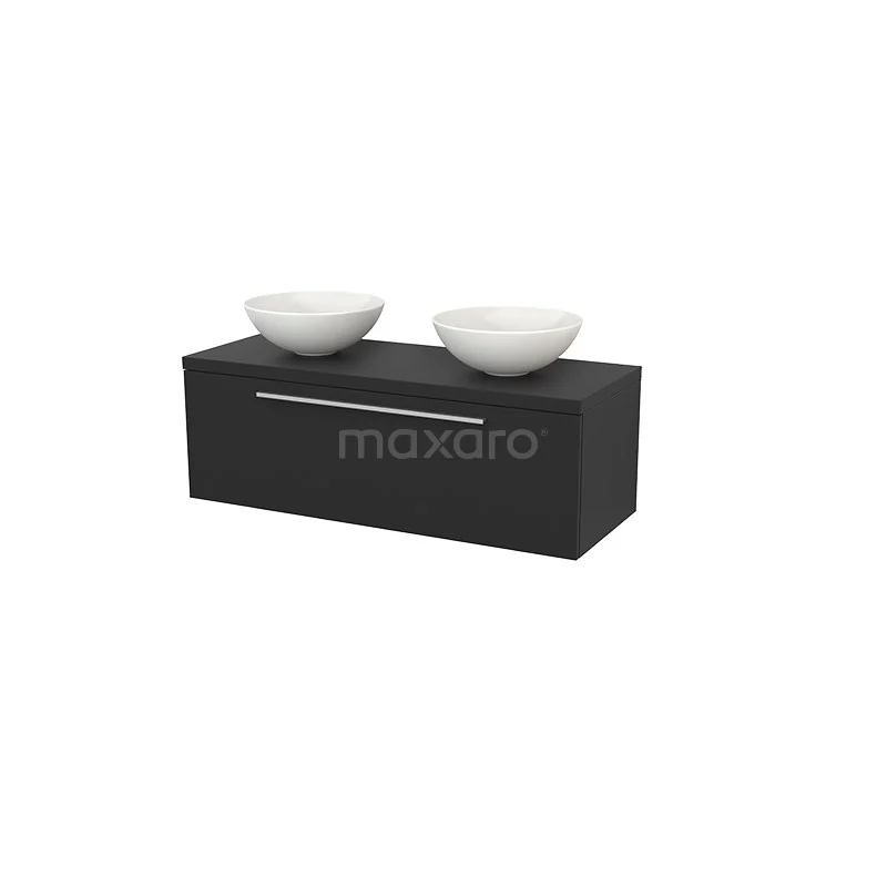 Modulo+ Plato Badmöbel mit Aufsatzwaschbecken | 120 cm Kohlenstoff Flach front Kohlenstoff blatt 1 Schublade