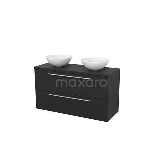 Modulo+ Plato Badmöbel mit Aufsatzwaschbecken | 120 cm Kohlenstoff Flach front Kohlenstoff blatt 2 übereinanderliegende Schubladen