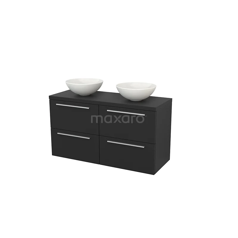 Modulo+ Plato Badmöbel mit Aufsatzwaschbecken | 120 cm Kohlenstoff Flach front Kohlenstoff blatt 4 Schubladen
