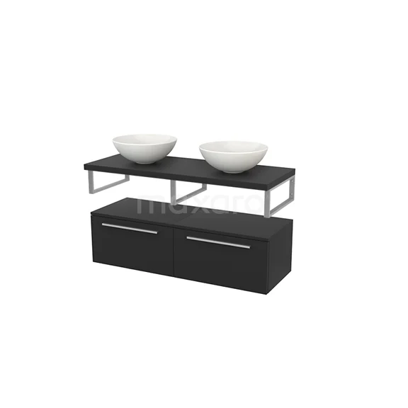 Modulo+ Plato Badmöbel mit Aufsatzwaschbecken | 120 cm Kohlenstoff Flach front Kohlenstoff blatt Tief hängend