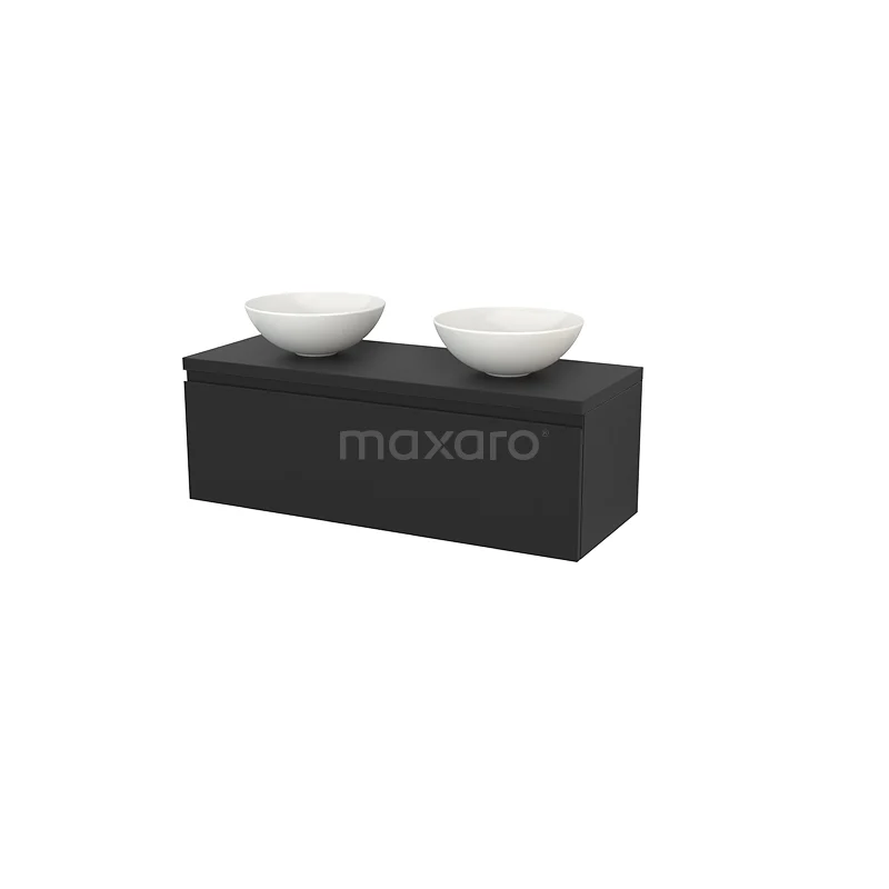 Modulo+ Plato Badmöbel mit Aufsatzwaschbecken | 120 cm Kohlenstoff Grifflos front Kohlenstoff blatt 1 Schublade