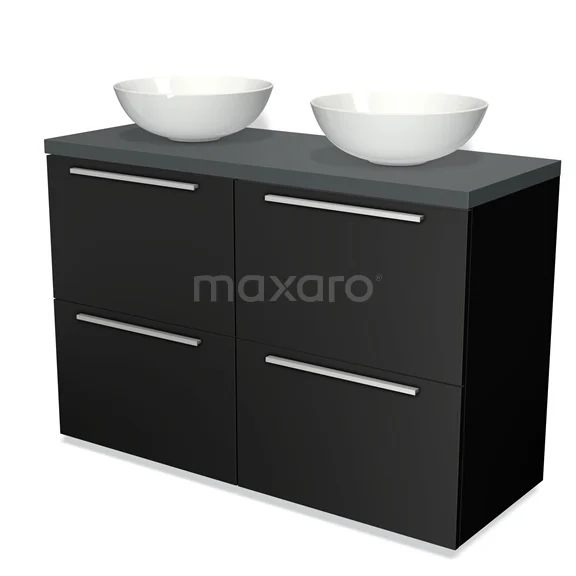 Modulo Plato Badmöbel mit Aufsatzwaschbecken | 120 cm Matt Schwarz Flach front Dunkelgrau blatt 4 hohe Schubladen