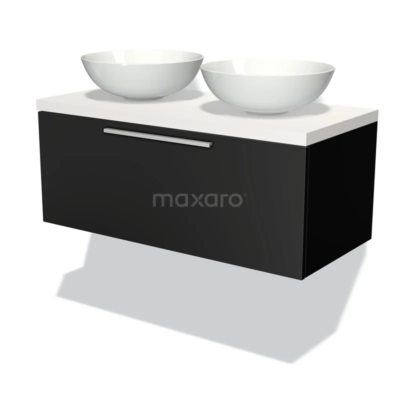 Modulo Plato Badmöbel mit Aufsatzwaschbecken | 120 cm Matt Schwarz Flach front Matt Weiß blatt 1 Schublade