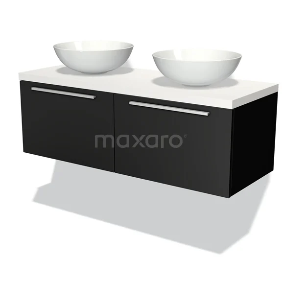 Modulo Plato Badmöbel mit Aufsatzwaschbecken | 120 cm Matt Schwarz Flach front Matt Weiß blatt 2 nebeneinanderliegende Schubladen