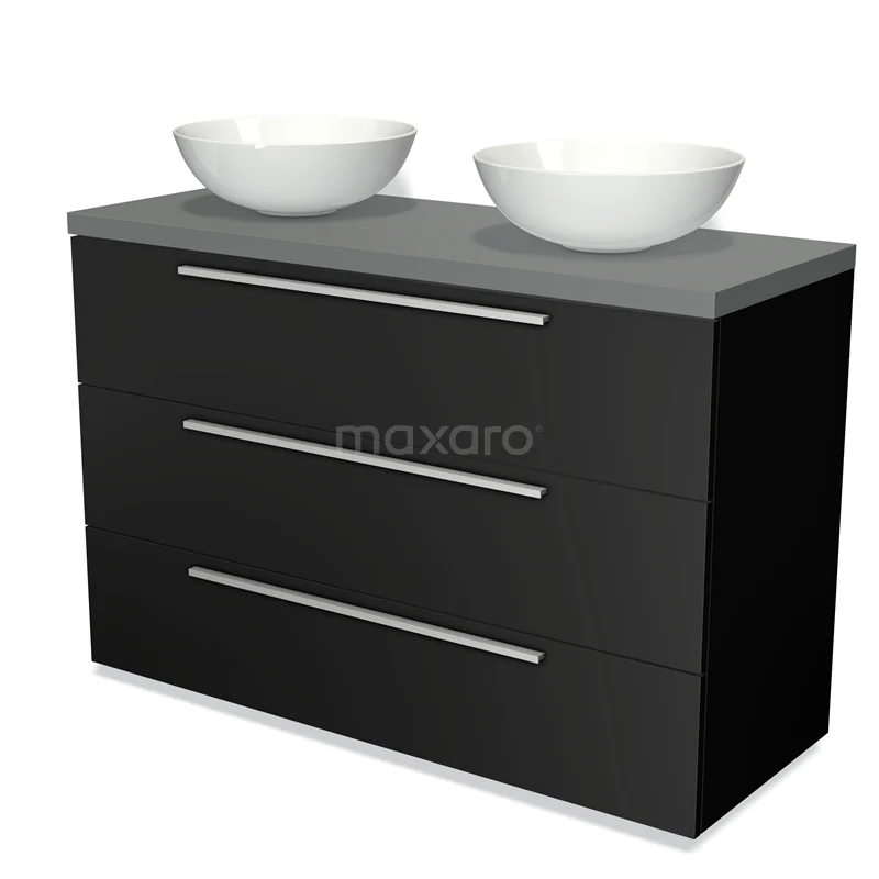 Modulo Plato Badmöbel mit Aufsatzwaschbecken | 120 cm Matt Schwarz Flach front Mittelgrau blatt 3 Schubladen