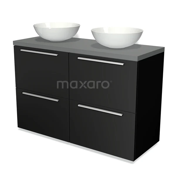 Modulo Plato Badmöbel mit Aufsatzwaschbecken | 120 cm Matt Schwarz Flach front Mittelgrau blatt 4 hohe Schubladen
