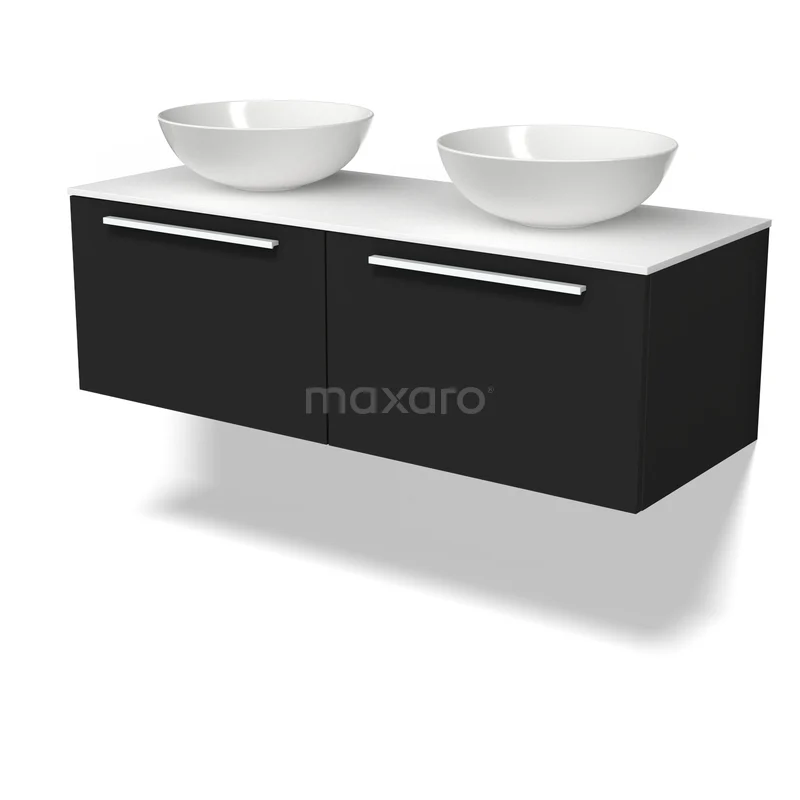 Modulo Plato Badmöbel mit Aufsatzwaschbecken | 120 cm Matt Schwarz Flach front Solid Surface blatt 2 nebeneinanderliegende Schubladen