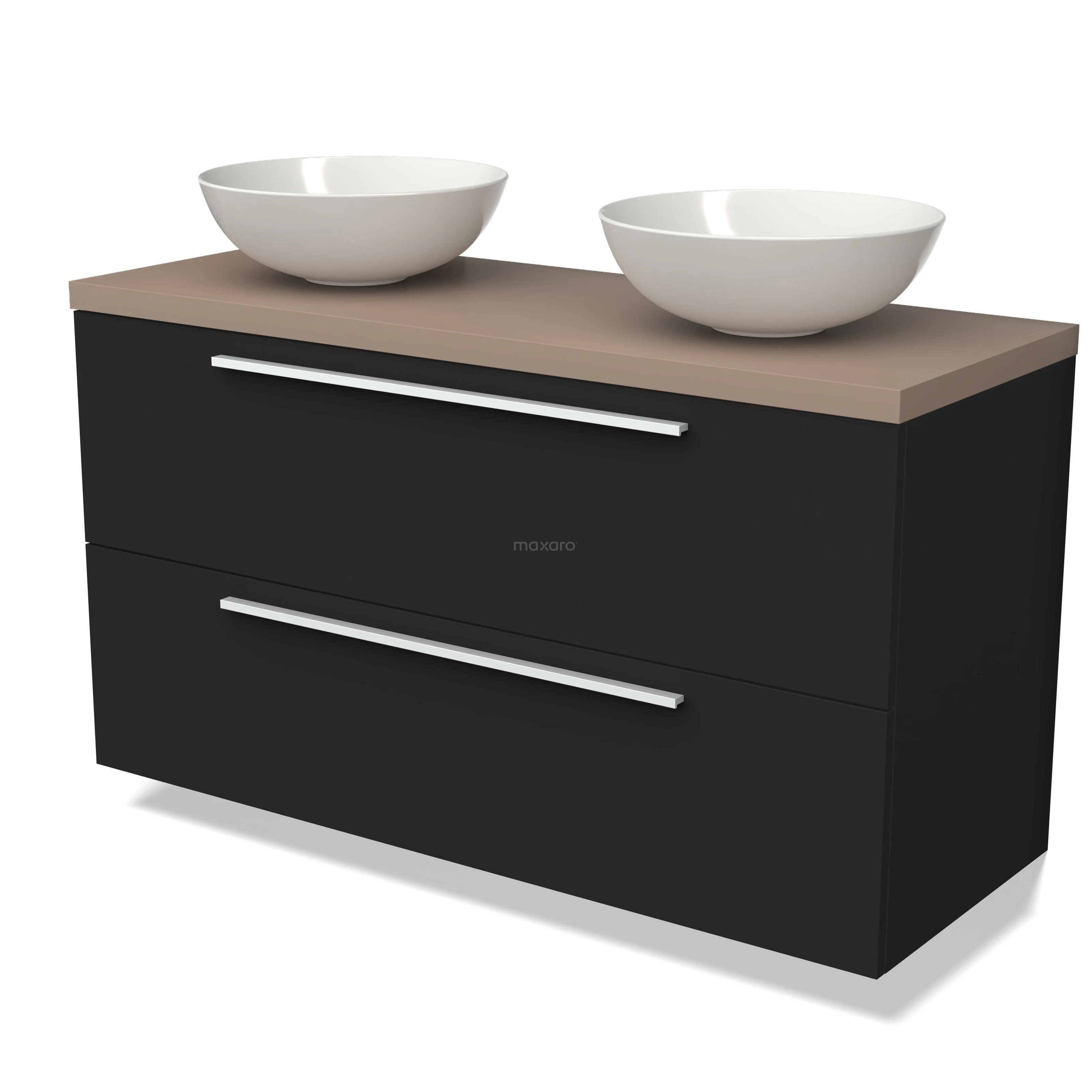 Modulo Plato Badmöbel mit Aufsatzwaschbecken | 120 cm Matt Schwarz Flach front Taupe blatt 2 übereinanderliegende Schubladen