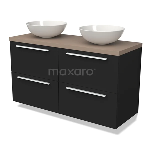 Modulo Plato Badmöbel mit Aufsatzwaschbecken | 120 cm Matt Schwarz Flach front Taupe blatt 4 Schubladen