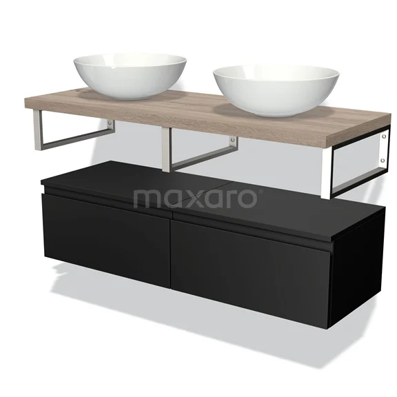 Modulo Plato Badmöbel mit Aufsatzwaschbecken | 120 cm Matt Schwarz Grifflos front Eiche blatt Tief hängend