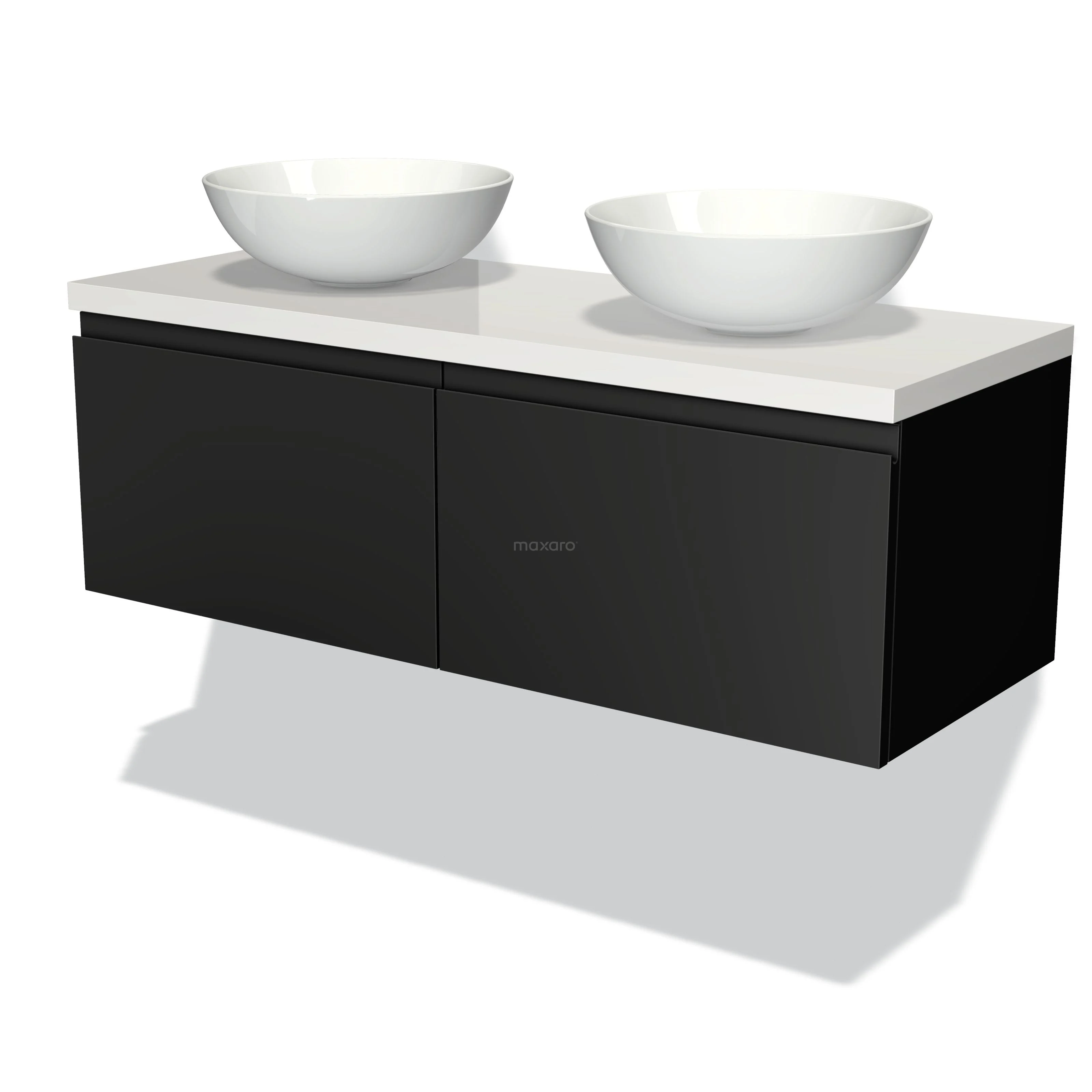 Modulo Plato Badmöbel mit Aufsatzwaschbecken | 120 cm Matt Schwarz Grifflos front Hochglanz Weiß blatt 2 nebeneinanderliegende Schubladen