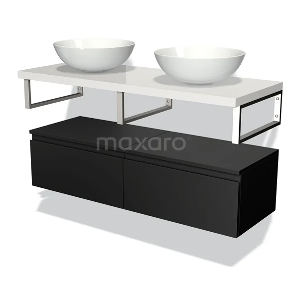 Modulo Plato Badmöbel mit Aufsatzwaschbecken | 120 cm Matt Schwarz Grifflos front Hochglanz Weiß blatt Tief hängend