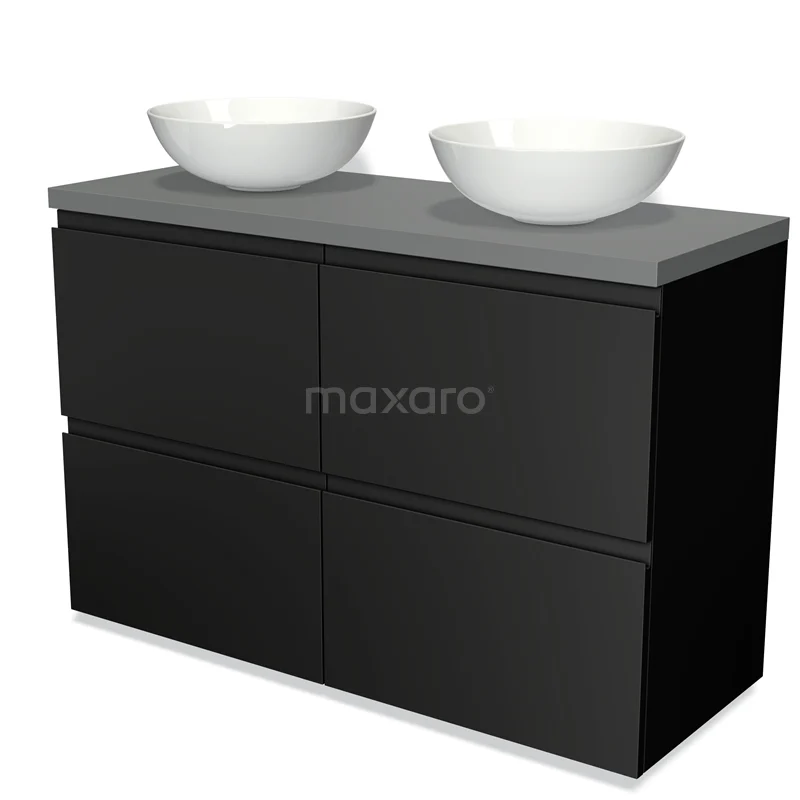 Modulo Plato Badmöbel mit Aufsatzwaschbecken | 120 cm Matt Schwarz Grifflos front Mittelgrau blatt 4 hohe Schubladen