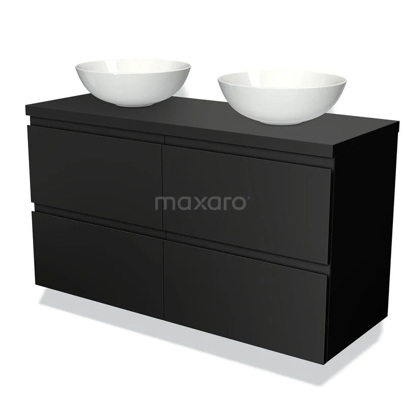 Modulo Plato Badmöbel mit Aufsatzwaschbecken | 120 cm Matt Schwarz Grifflos front Mittelgrau blatt 4 Schubladen