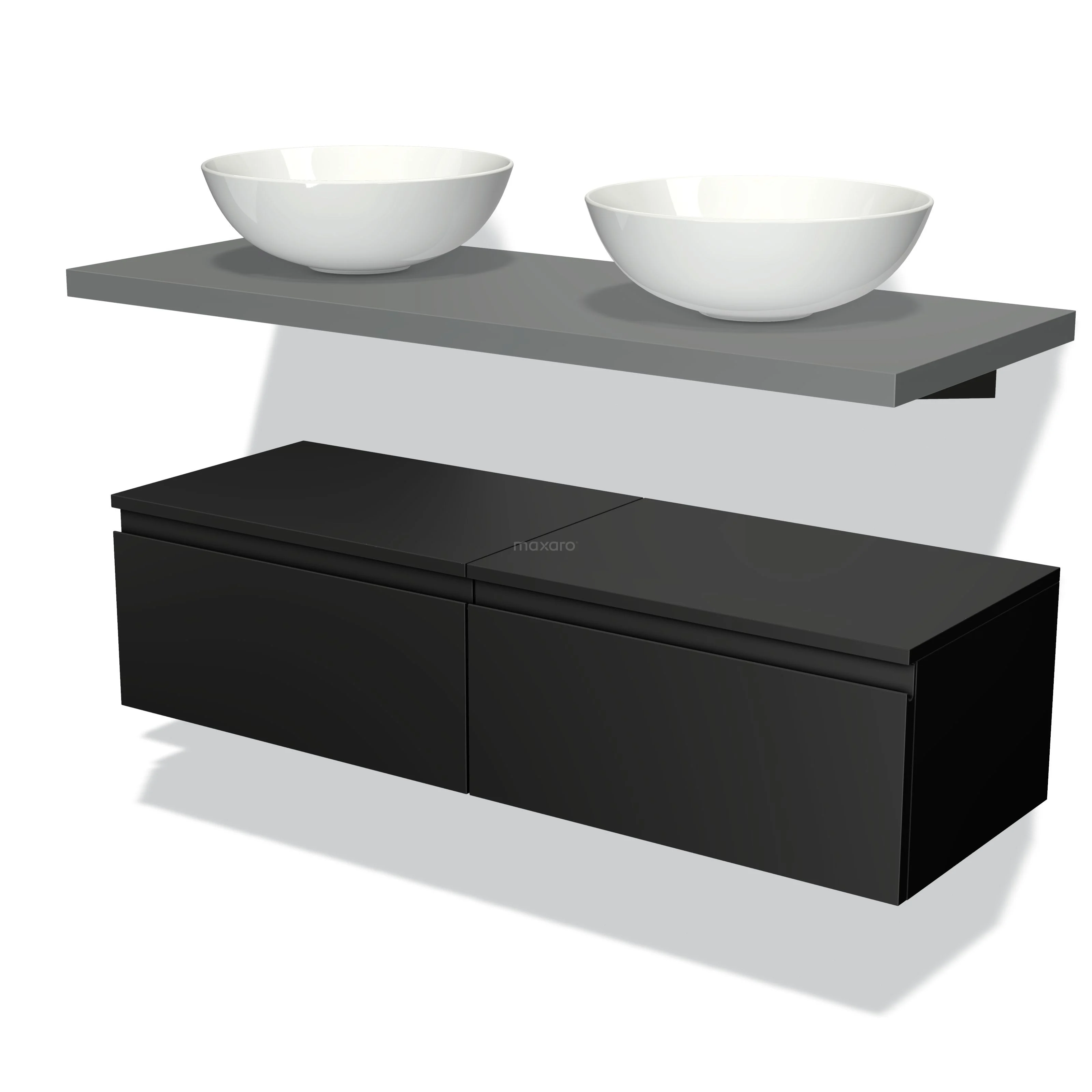Modulo Plato Badmöbel mit Aufsatzwaschbecken | 120 cm Matt Schwarz Grifflos front Mittelgrau blatt Tief hängend