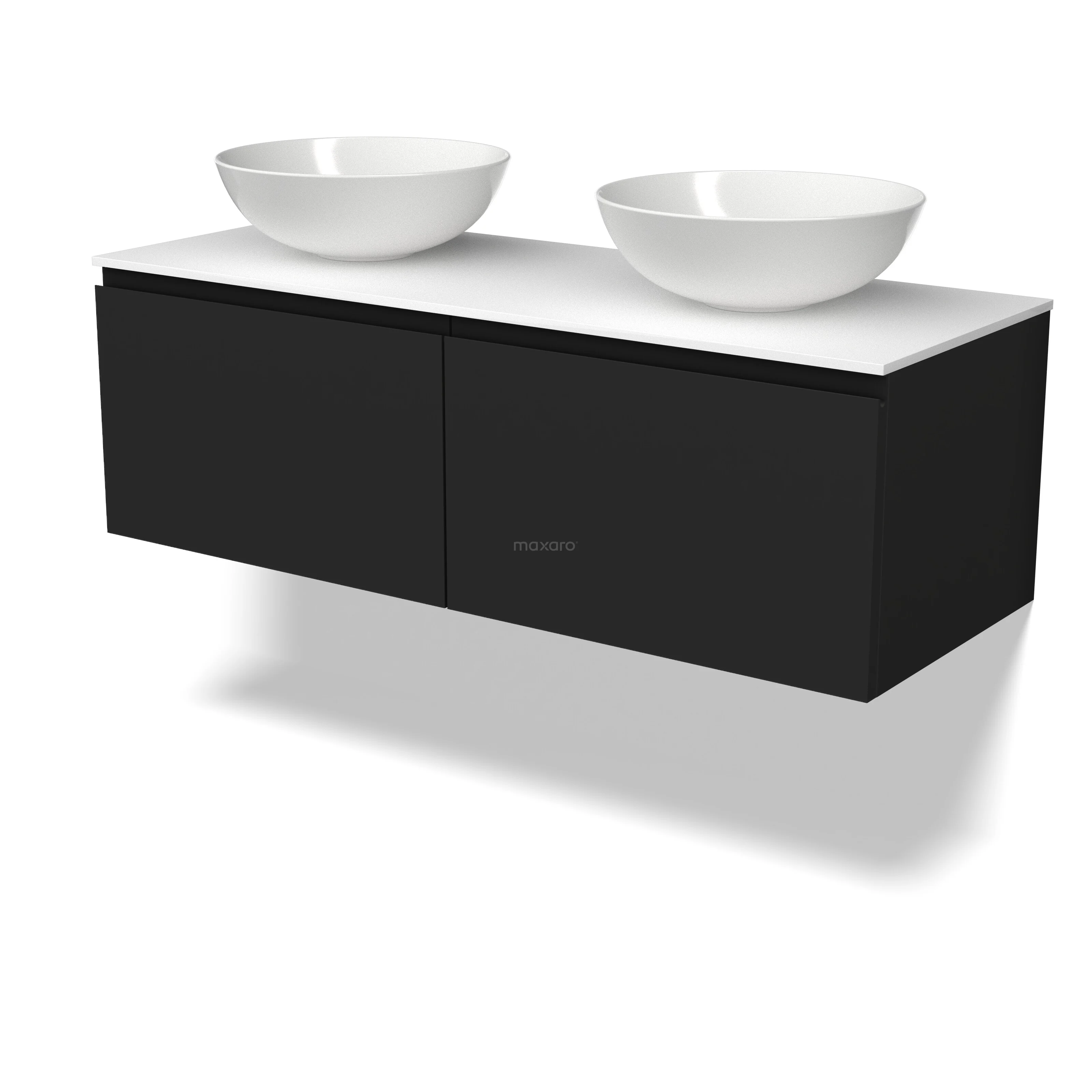 Modulo Plato Badmöbel mit Aufsatzwaschbecken | 120 cm Matt Schwarz Grifflos front Solid Surface blatt 2 nebeneinanderliegende Schubladen