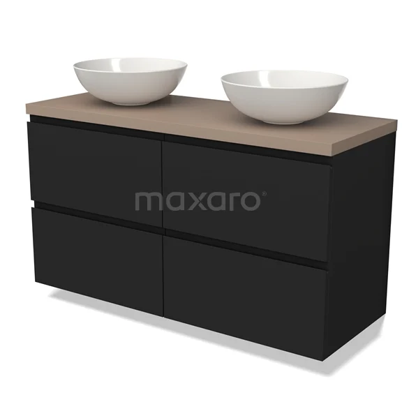 Modulo Plato Badmöbel mit Aufsatzwaschbecken | 120 cm Matt Schwarz Grifflos front Taupe blatt 4 Schubladen