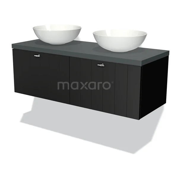 Modulo Plato Badmöbel mit Aufsatzwaschbecken | 120 cm Matt Schwarz Lamelle front Dunkelgrau blatt 2 nebeneinanderliegende Schubladen