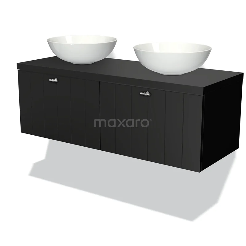 Modulo Plato Badmöbel mit Aufsatzwaschbecken | 120 cm Matt Schwarz Lamelle front Matt Schwarz blatt 2 nebeneinanderliegende Schubladen