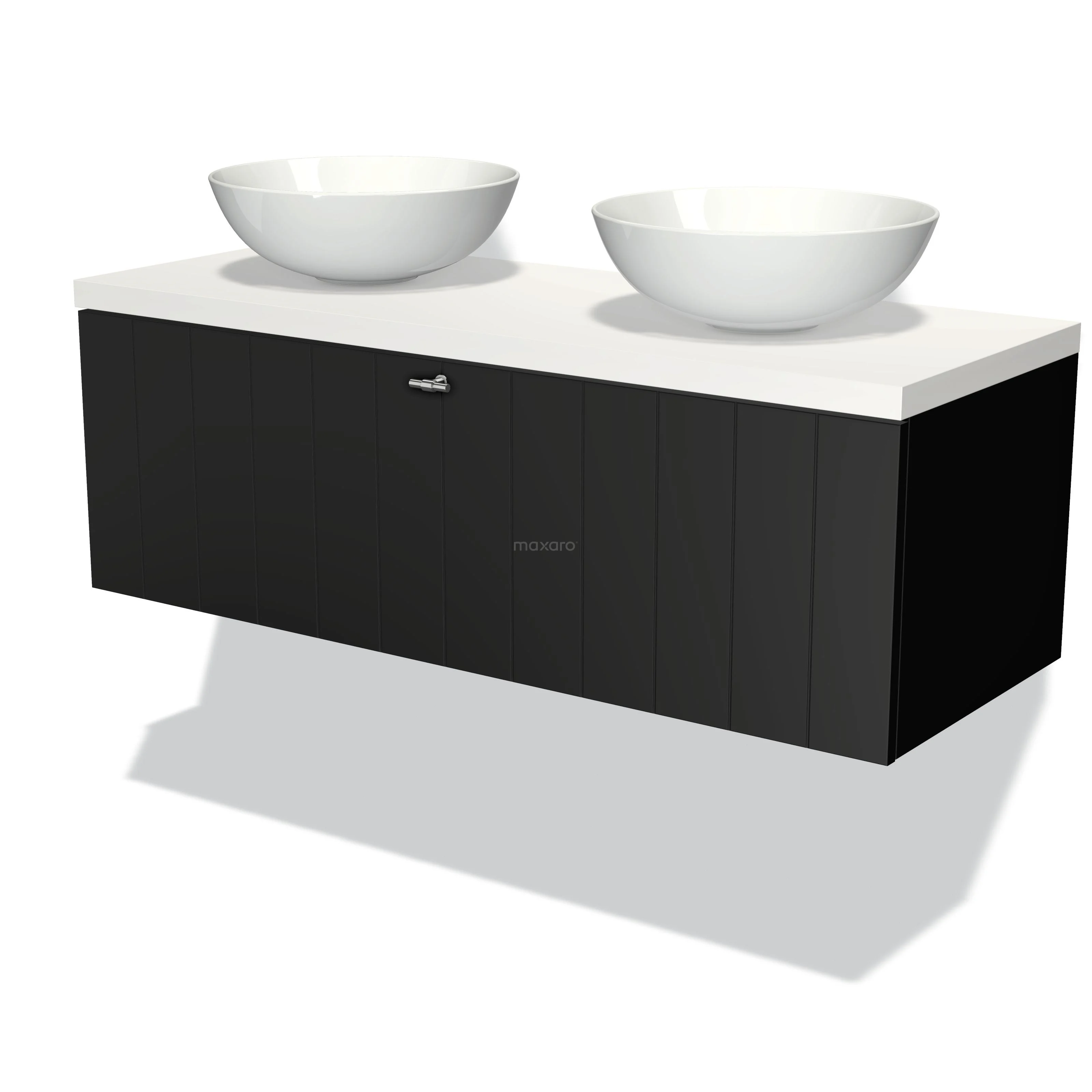 Modulo Plato Badmöbel mit Aufsatzwaschbecken | 120 cm Matt Schwarz Lamelle front Matt Weiß blatt 1 Schublade