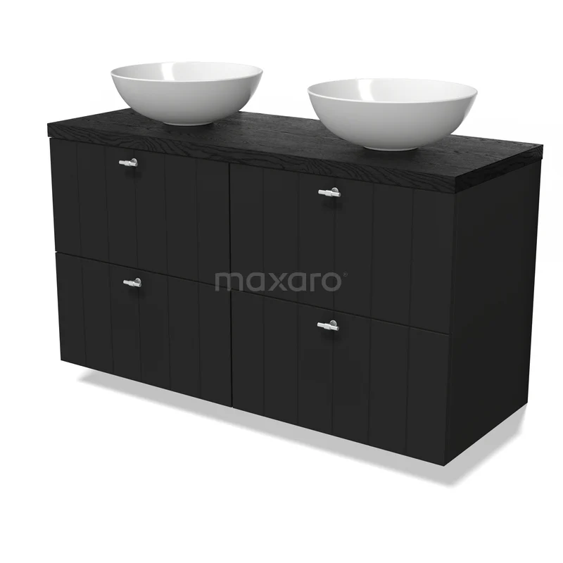 Modulo Plato Badmöbel mit Aufsatzwaschbecken | 120 cm Matt Schwarz Lamelle front Schwarze Eiche blatt 4 Schubladen