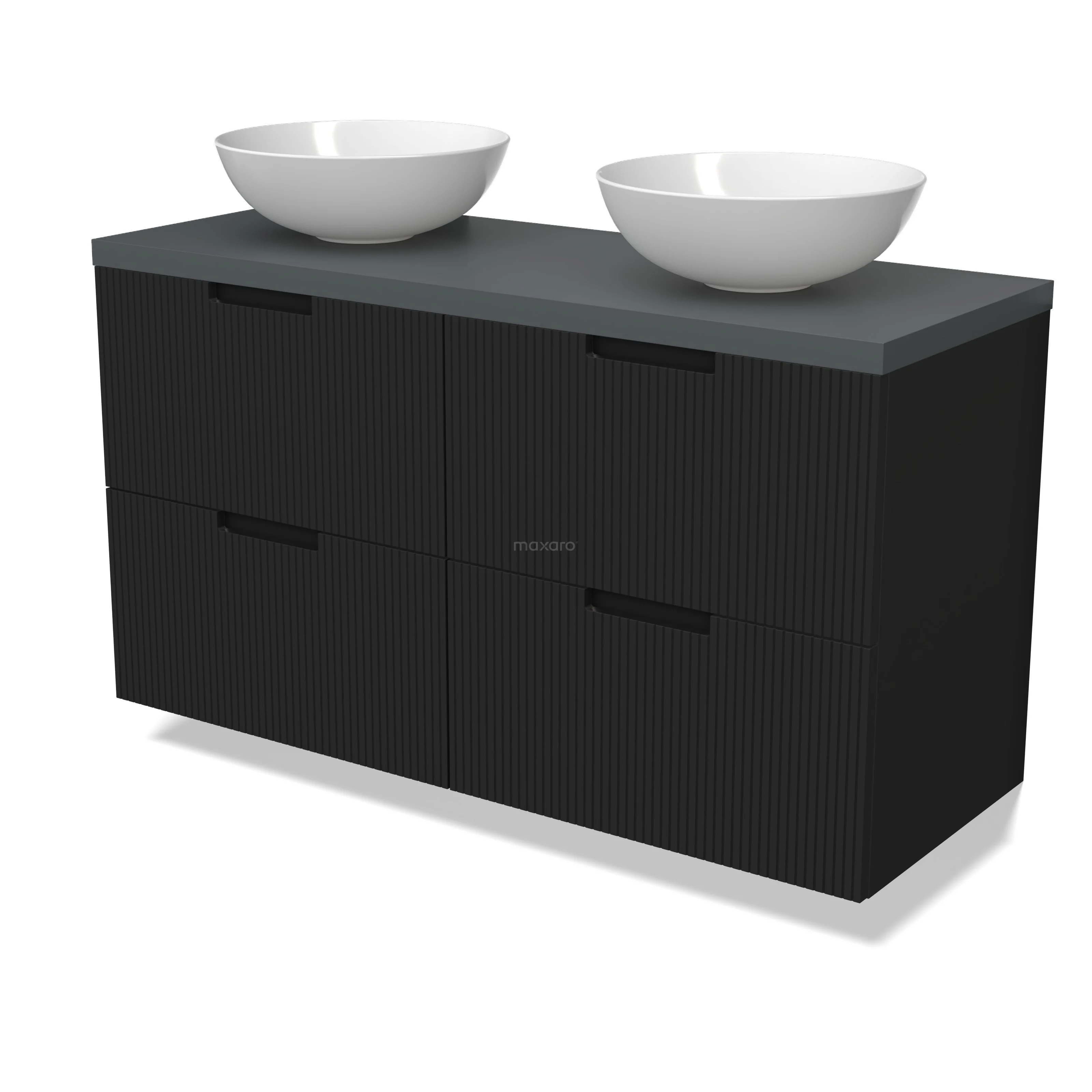 Modulo Plato Badmöbel mit Aufsatzwaschbecken | 120 cm Matt Schwarz Linie front Dunkelgrau blatt 4 Schubladen