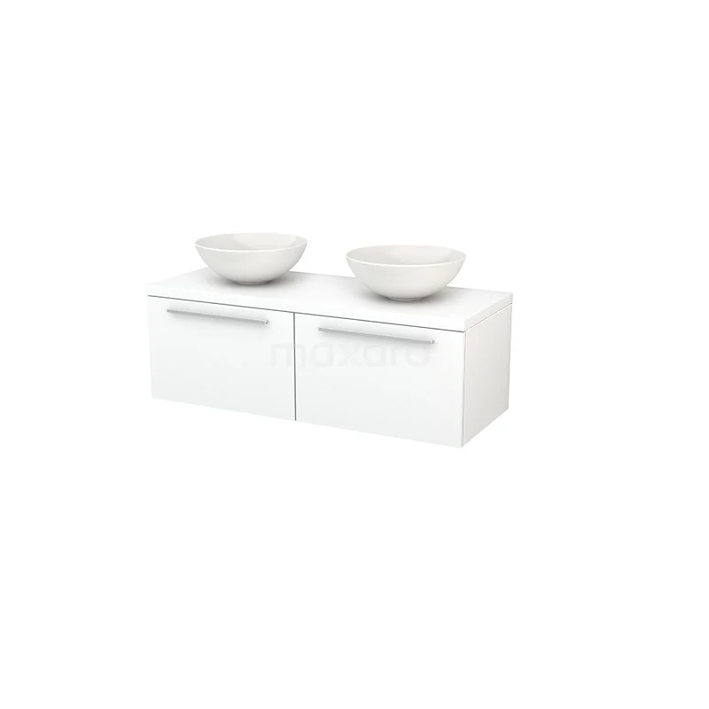 Modulo+ Plato Badmöbel mit Aufsatzwaschbecken | 120 cm Matt Weiß Flach front Matt Weiß blatt 2 nebeneinanderliegende Schubladen
