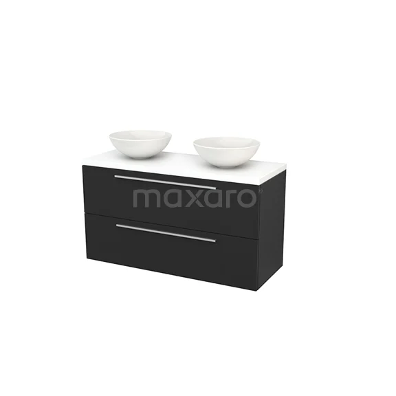 Modulo+ Plato Badmöbel mit Aufsatzwaschbecken | 120 cm Matt Weiß Flach front Matt Weiß blatt 2 übereinanderliegende Schubladen