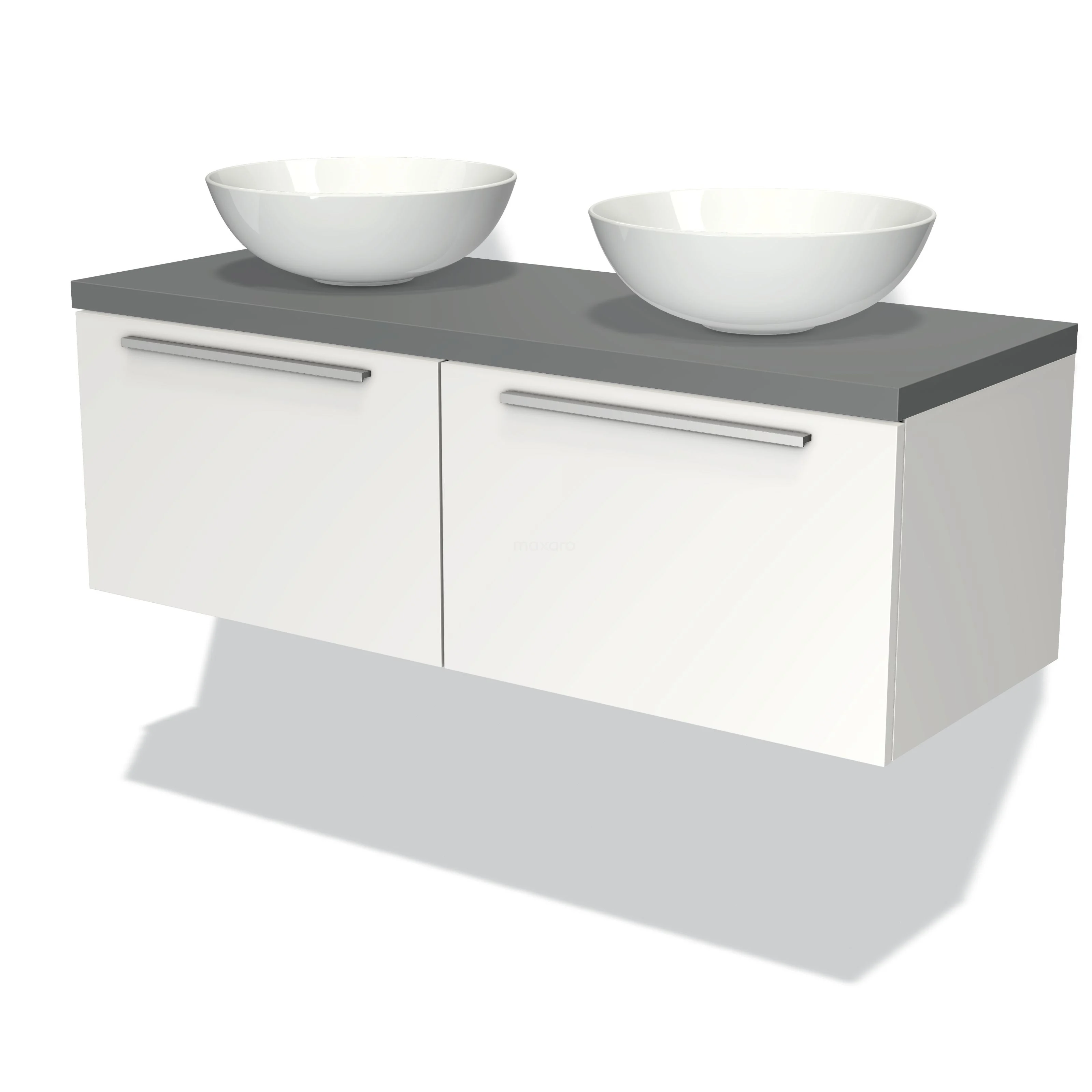 Modulo Plato Badmöbel mit Aufsatzwaschbecken | 120 cm Matt Weiß Flach front Mittelgrau blatt 2 nebeneinanderliegende Schubladen