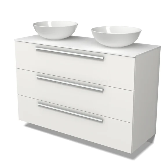 Modulo Plato Badmöbel mit Aufsatzwaschbecken | 120 cm Matt Weiß Flach front Solid Surface blatt 3 Schubladen
