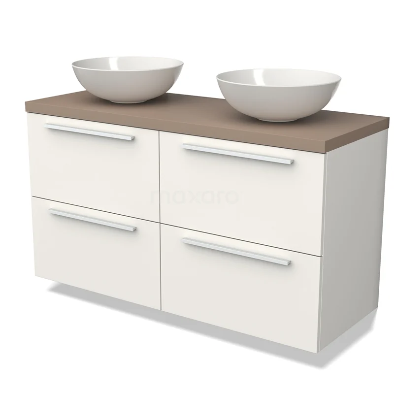 Modulo Plato Badmöbel mit Aufsatzwaschbecken | 120 cm Matt Weiß Flach front Taupe blatt 4 Schubladen