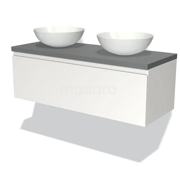 Modulo Plato Badmöbel mit Aufsatzwaschbecken | 120 cm Matt Weiß Grifflos front Mittelgrau blatt 1 Schublade