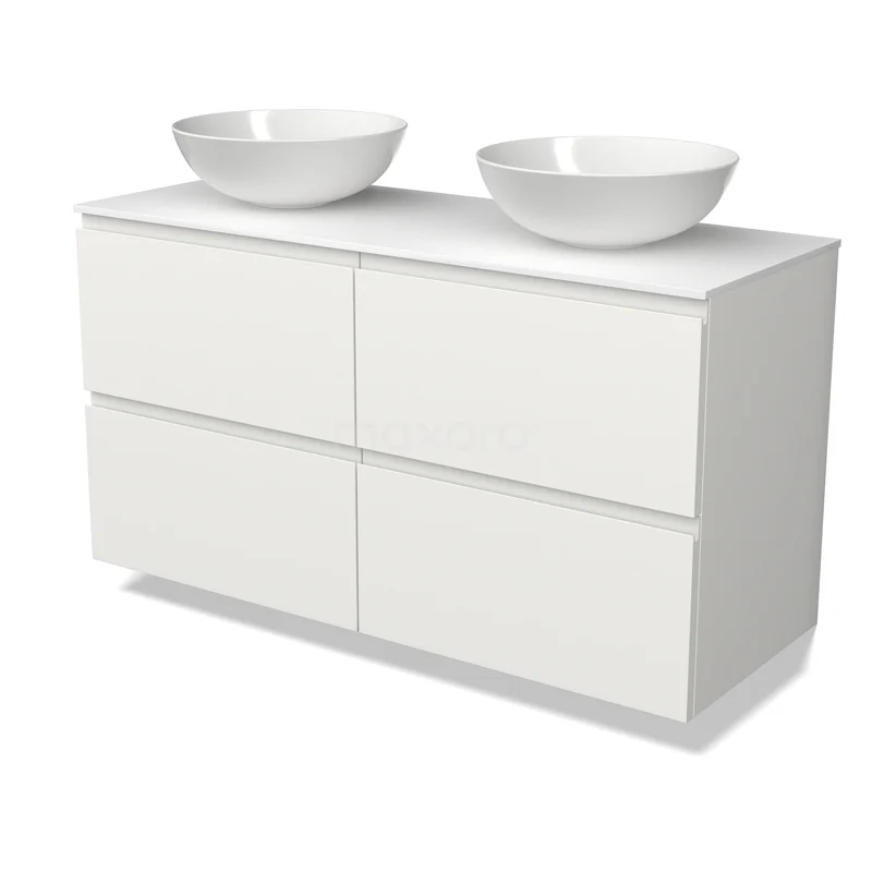 Modulo Plato Badmöbel mit Aufsatzwaschbecken | 120 cm Matt Weiß Grifflos front Solid Surface blatt 4 Schubladen