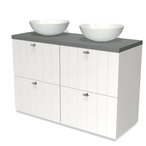 Modulo Plato Badmöbel mit Aufsatzwaschbecken | 120 cm Matt Weiß Lamelle front Mittelgrau blatt 4 hohe Schubladen