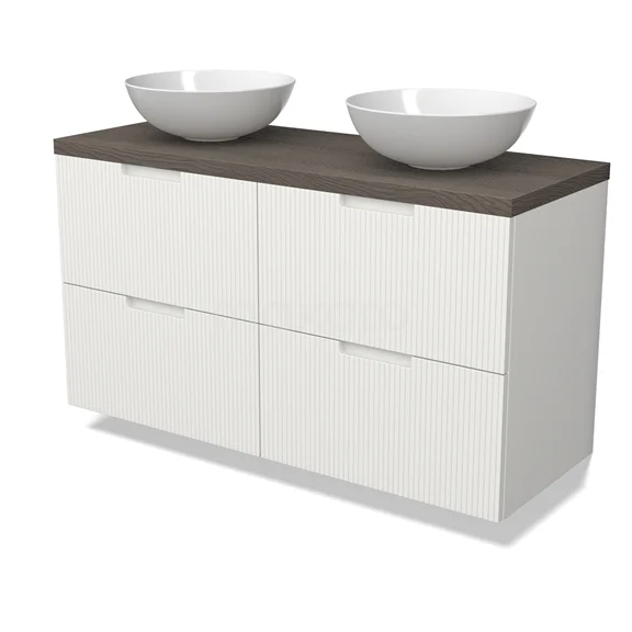 Modulo Plato Badmöbel mit Aufsatzwaschbecken | 120 cm Matt Weiß Linie front Dunkelbraune Eiche blatt 4 Schubladen BMK18-02160