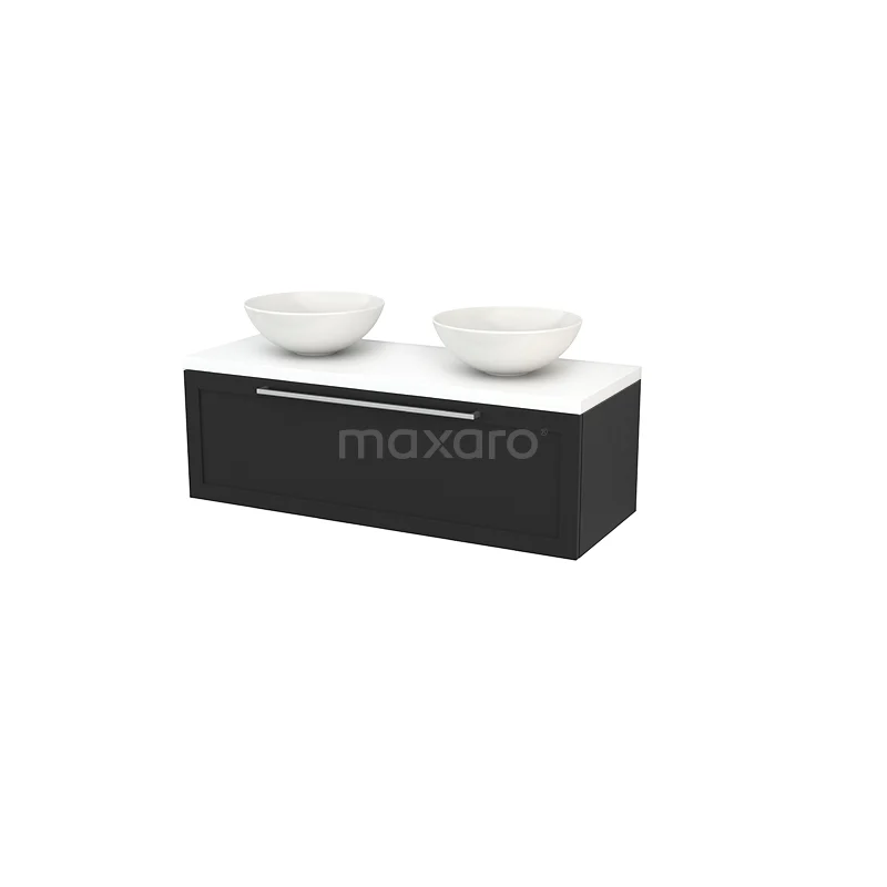 Modulo+ Plato Badmöbel mit Aufsatzwaschbecken | 120 cm Matt Weiß Rahmen front Matt Weiß blatt 1 Schublade