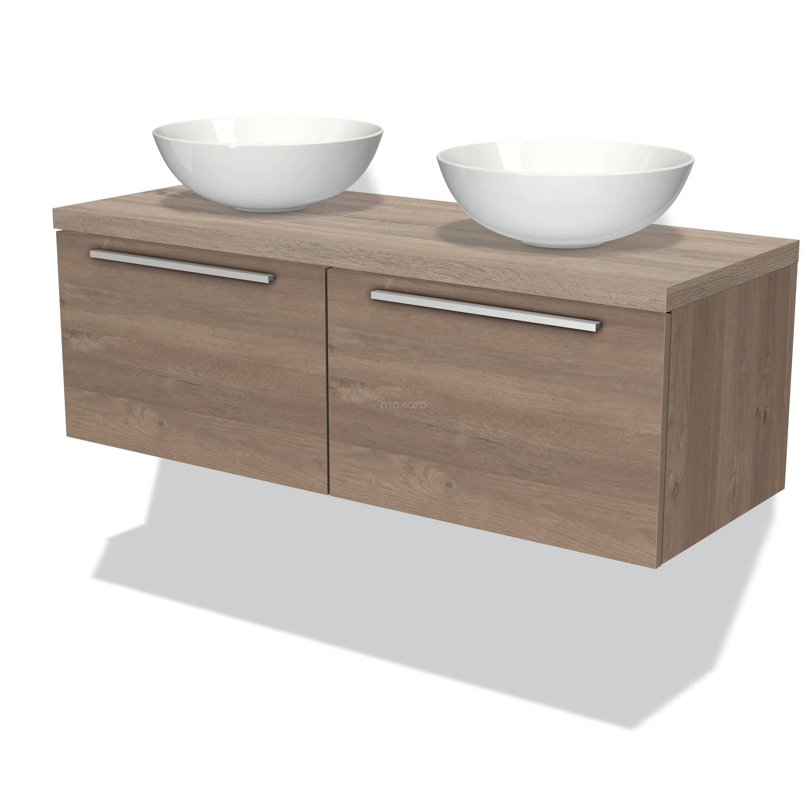 Modulo Plato Badmöbel mit Aufsatzwaschbecken | 120 cm Mittelbraune Eiche Flach front Eiche blatt 2 nebeneinanderliegende Schubladen